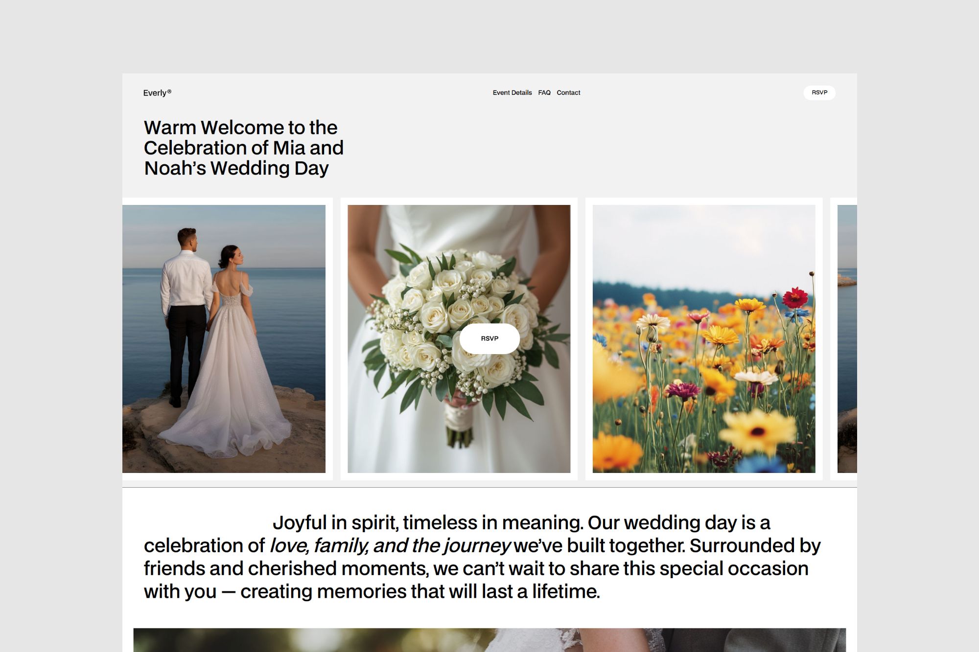 Everly is a minimal Webflow wedding template designed for elegant RSVP websites. It features smooth interactions and a timeless style.